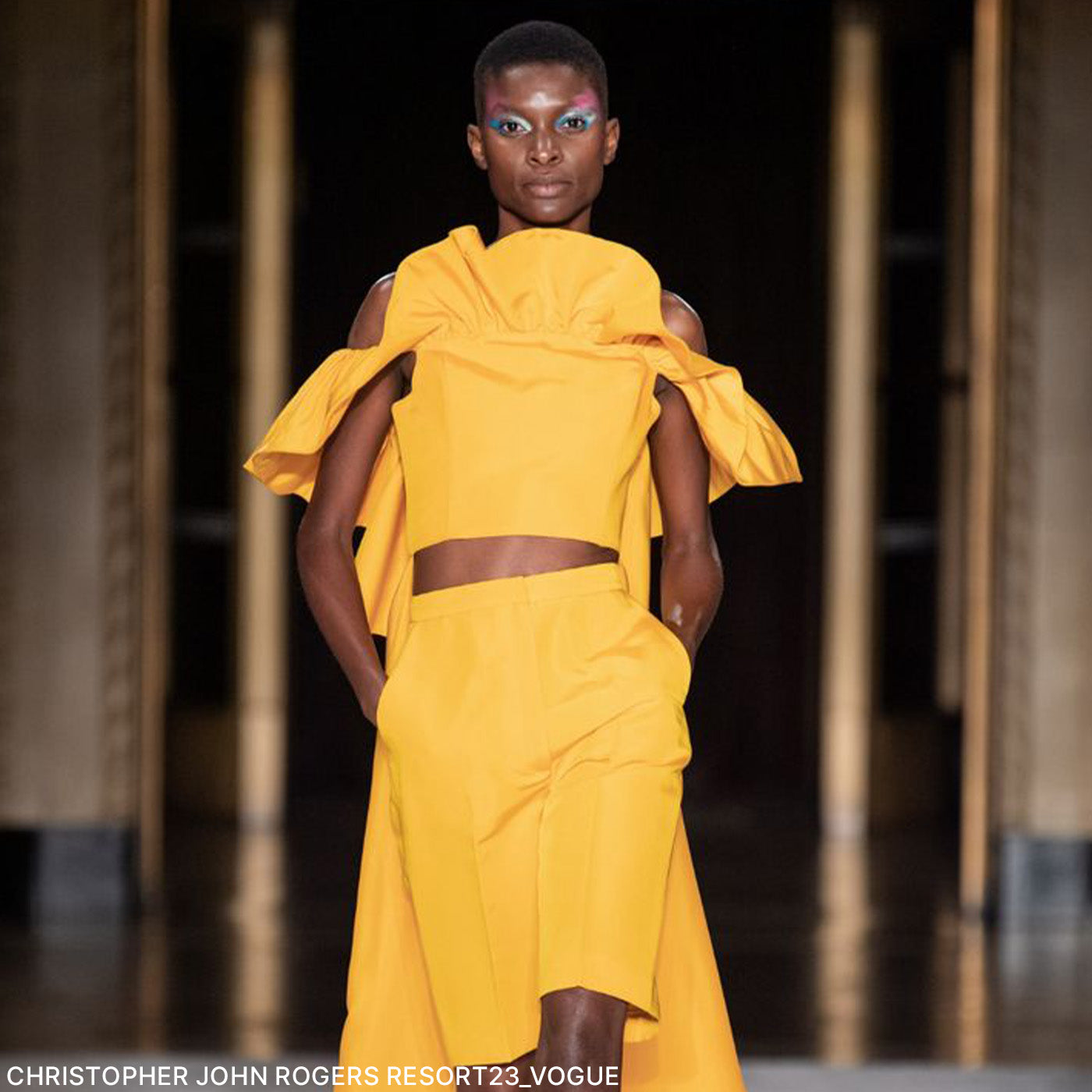 La couleur est inspirée par le travail de Jess Redgrave avec ClimaFibre 2022, qui a développé des fibres durables à base de tournesol visant à protéger la biodiversité.