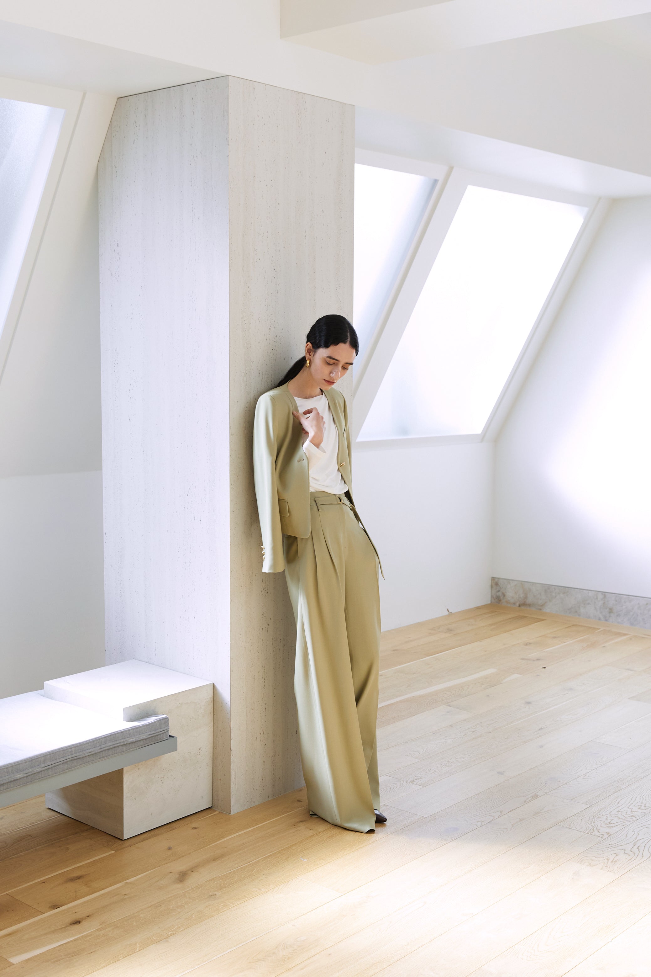 La ligne asymétrique à l’avant crée un intérêt visuel subtil sans complexifier la pièce, tandis que la fermeture à un seul bouton préserve une forme naturelle.